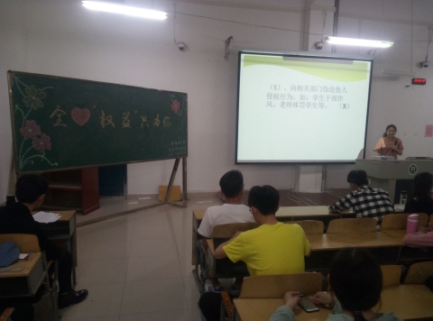 为强化大学生的维权意识,2018年5月3日晚7点外国语学院召开“全心权益只为你”主题活动,本次活动由外国语学院组织部与权益部共同举办。