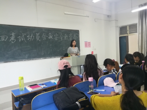 为帮助我院英语专业学生理清考试思路,顺利通过英语专业四级考试,4月20日,外国语学院在二教C102教室举行了2016级学生专四考试动员大会。外国语学院2016级全体学生参加了动员会并认真听取了讲座,外国语学院辅导员范琼琼,黄琳,张珊姗参加了会议。