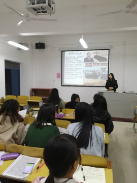 为了庆祝党的十九大胜利召开,学习和贯彻党的重大方针政策,11月16日晚7点,外国语学院商务英语二班在二教307召开了每月例行的主题班会,本次班会的主题是“学习十九大,扬帆再起航”,辅导员左媛媛老师和商务英语二班全体同学参加了本次活动,班会由左媛媛老师主持。