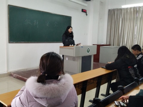会上,陆岱宝老师对学生进行了就冬季宿舍用水用电安全,违章电器,假期路途安全等方面的介绍,其次还向学生说明了严禁参与或组织招收寒假工的重要性,另外还有火车票的购票和学生证的使用,最后还强调了期末考试的纪律,即严肃考风考纪。在班会的最后,陆老师总结了半年来的班级活动和学生工作,对学生的进步提出了肯定,同时对同学们春夏学期提出了新的要求,鼓励学生努力学习,提升自己各方面的综合素质。(外国语学院)