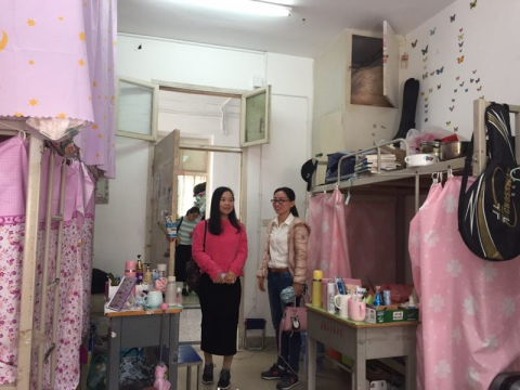 在走访和检查的过程中,领导老师们详细询问了同学们的宿舍生活情况和学习情况,对宿舍良好文化氛围给与充分肯定和鼓励的同时,也对学生寝室的内务整理和卫生安全情况提出了意见和建议,并就学生宿舍的财产安全,人身安全,用电安全等进行了检查,向同学们传递了安全防范的措施,提醒同学们树立安全第一的意识。