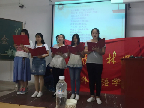 “五四运动“的精神已经影响和教育了一代又一代的青年,“五四”运动至今已历经97年,但“五四”的精神却历久弥新,依然让中国的青年们为之震颤、为之澎湃。为铭记历史、弘扬“爱国、进步、科学、民主”的五四精神,201654日晚,外国语学院师生欢聚一堂,在二教406教室召开纪念“五四”运动97周年大会暨外国语学院五四青年节表彰大会。外国语学院党总支书记张志强、团总支书记吴宏、各班辅导员老师及全体学生参加了会议。