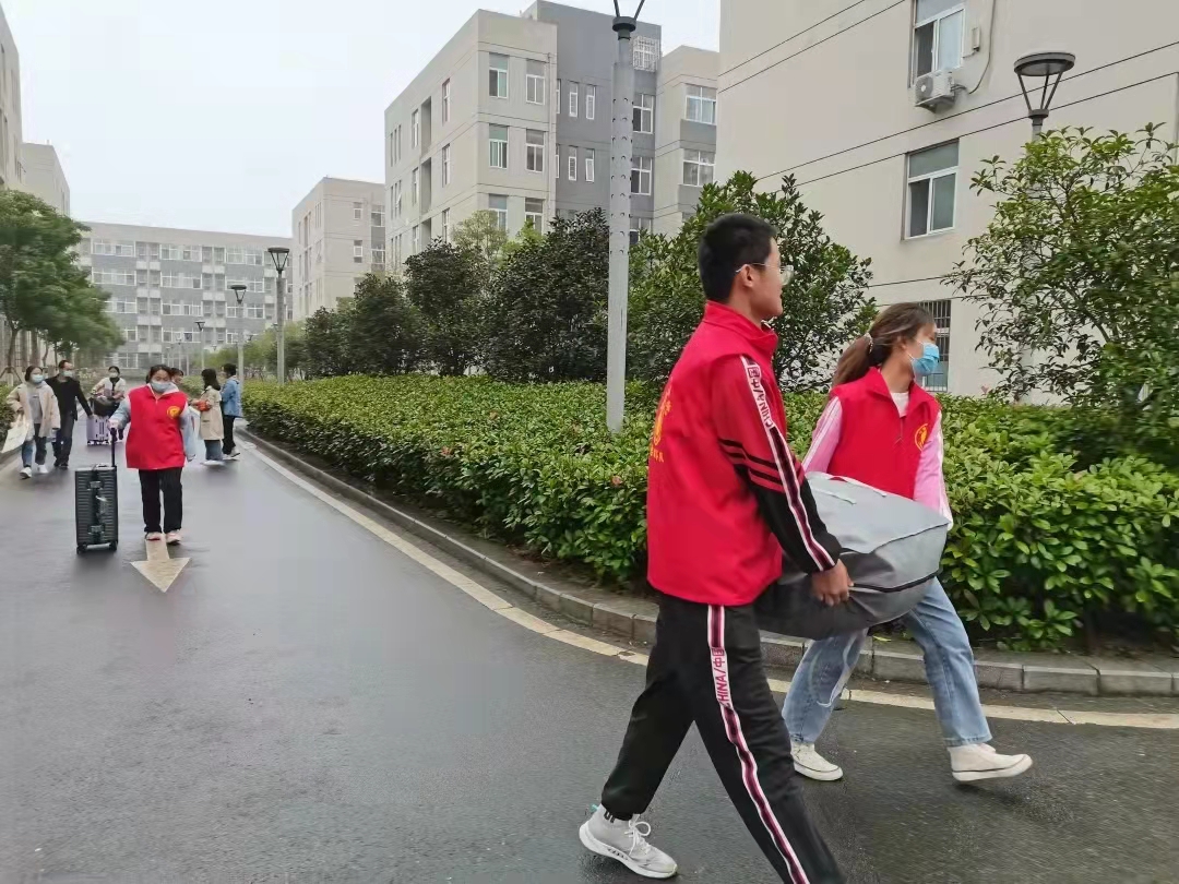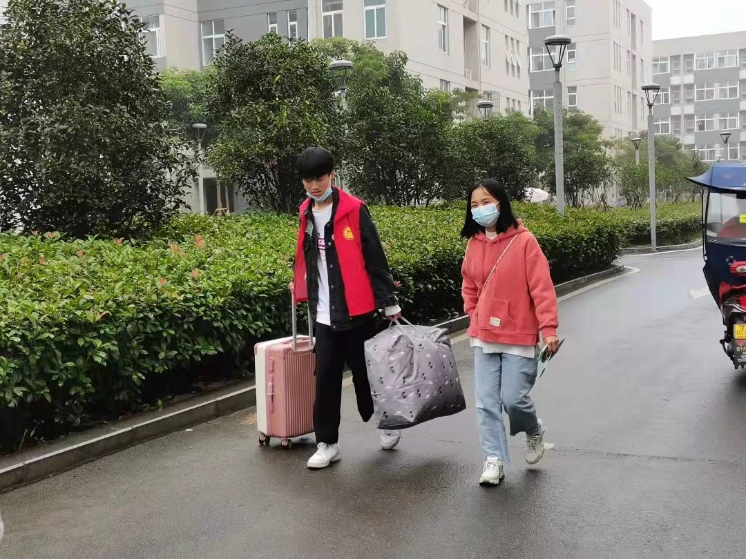 学长学姐们身披红色马甲,化身志愿者大队,帮助“小耳语”们搬运行李,送到宿舍,此外还有摆渡车来往于迎新地点和宿舍,来为新生们减轻负担,我院志愿者们满怀热情,服务细致认真,“小耳语”纷纷“五星好评”。