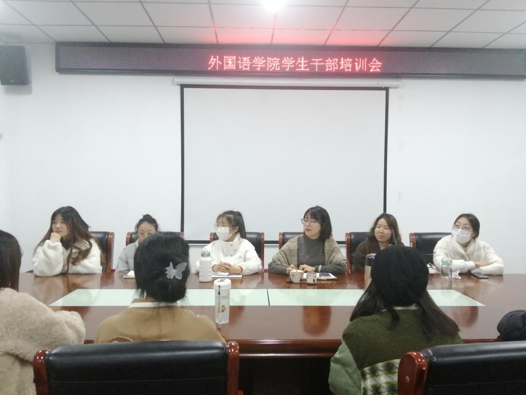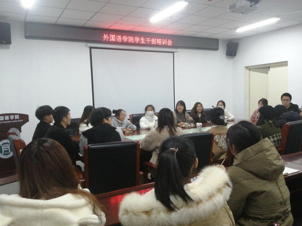 121日,外国语学院在人文艺术楼402召开院学生干部培训会,会议由高宇老师主持。院团总支、学生会、自律委员会全体学生干部参加本次会议