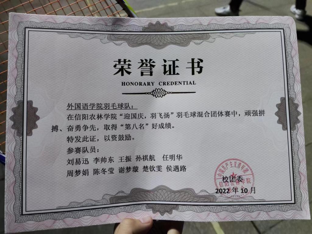外国语学院羽毛球队参与“迎国庆,羽飞扬”羽毛球混合团体赛