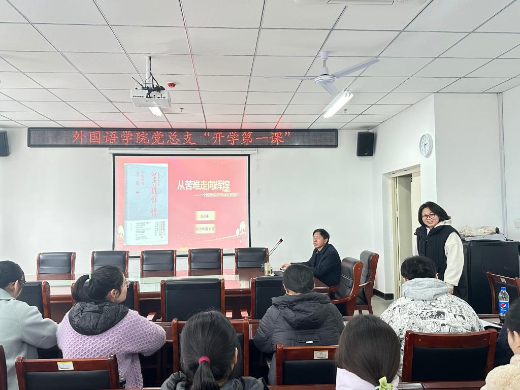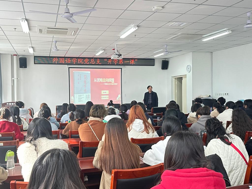 2023217日,外国语学院党总支在文学艺术楼402举办了开学第一课专题讲座。讲座以从苦难走向辉煌为主题,由党总支书记张志强主讲,团总支书记高宇及22级学生代表参加,魏君仪老师主持。
