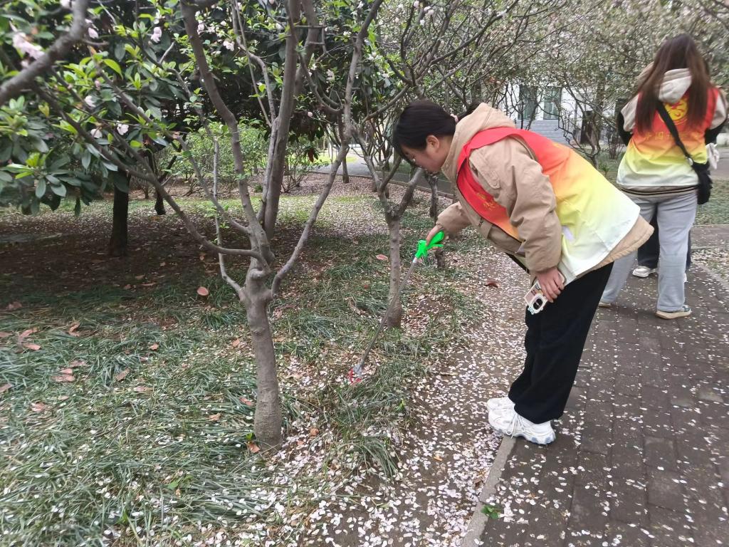 活动伊始,志愿者们来到申伯楼下集合,由组长分配打扫区域;接着,部门各成员有序开展志愿行动,清扫花园里的垃圾、捡拾步行路上的塑料袋,向大家展示“从我做起,从小事做起”的良好风貌,并合影留念。