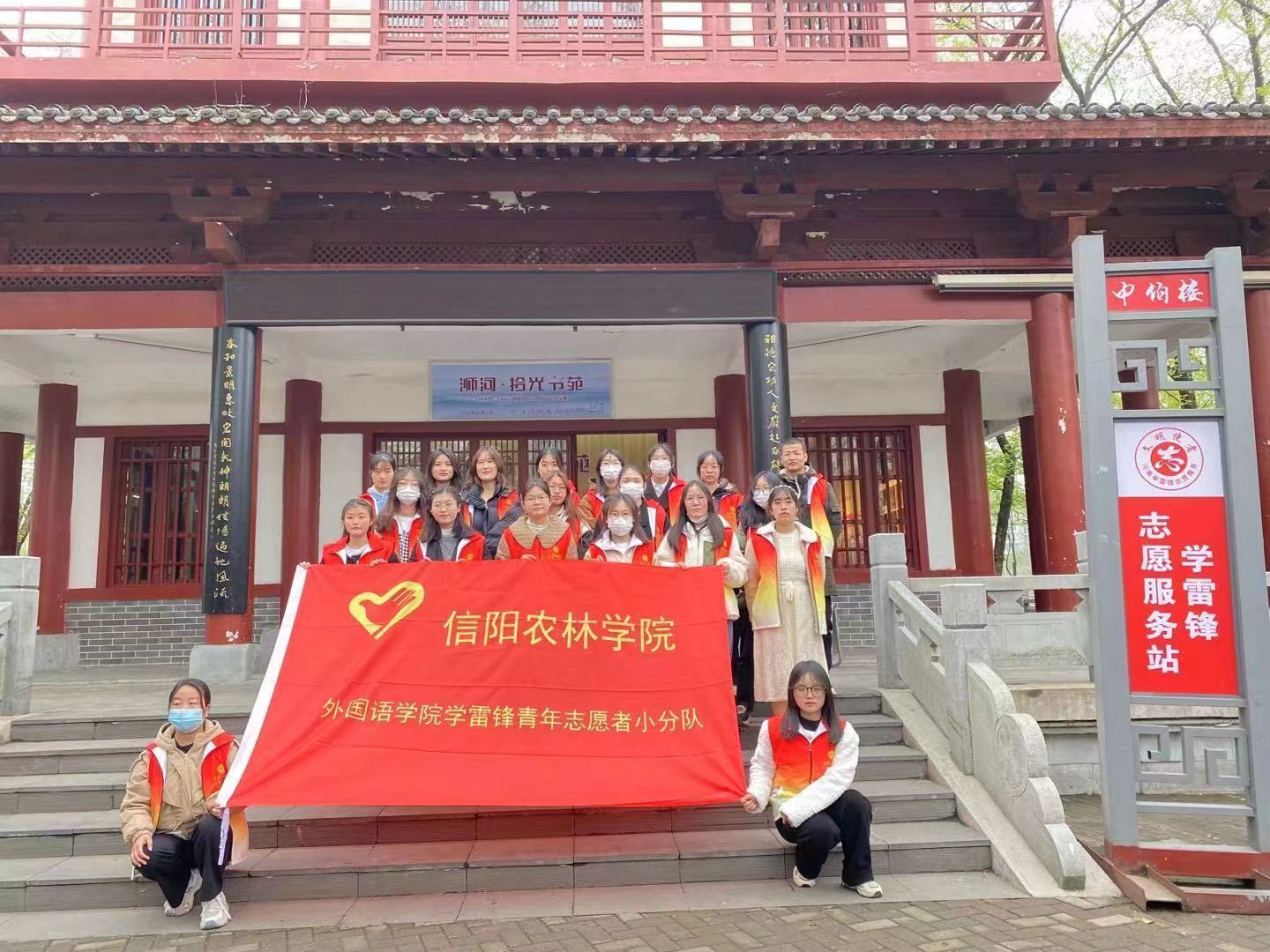 为进一步弘扬雷锋精神,增强学生环保意识,践行“两山理论”及美丽中国理念,2023年3月18日下午,外国语学院青工部成员前往浉河公园开展了卫生清洁志愿服务活动。