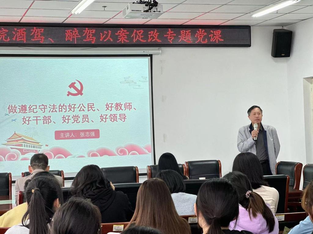 党总支书记张志强以《做遵纪守法的好公民、好教师、好干部、好党 员、好领导》为题,结合大家的实际情况和个人的成长目标等,从做一个规规矩矩的社会人、做一位忠于职守的人民教师、做一名合格的共产党员和树立忠诚、干净、担当的新形象,做党的好干部四个方面,给大家上了一堂精彩的党课。课上,张书记还用顺口溜的方式,建议大家作为一名成年人,要“爱党及爱国,遵纪和守法;孝敬父和母,公德心中把”;作为人民教师,“三尺讲台要站好,校纪国法记心间”;作为共产党员,要“勤俭节约、违纪必究、注意小节”;作为一名干部,“修身是根本,用权是关键。依法来做事,公开最保险,严字来把关”。