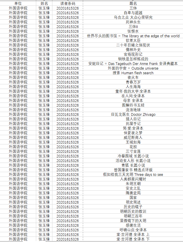 张玉锋,翻译2020级学生,一年借阅图书159本,为beat365在线平台官网图书馆2021年度借阅率最高的学生。