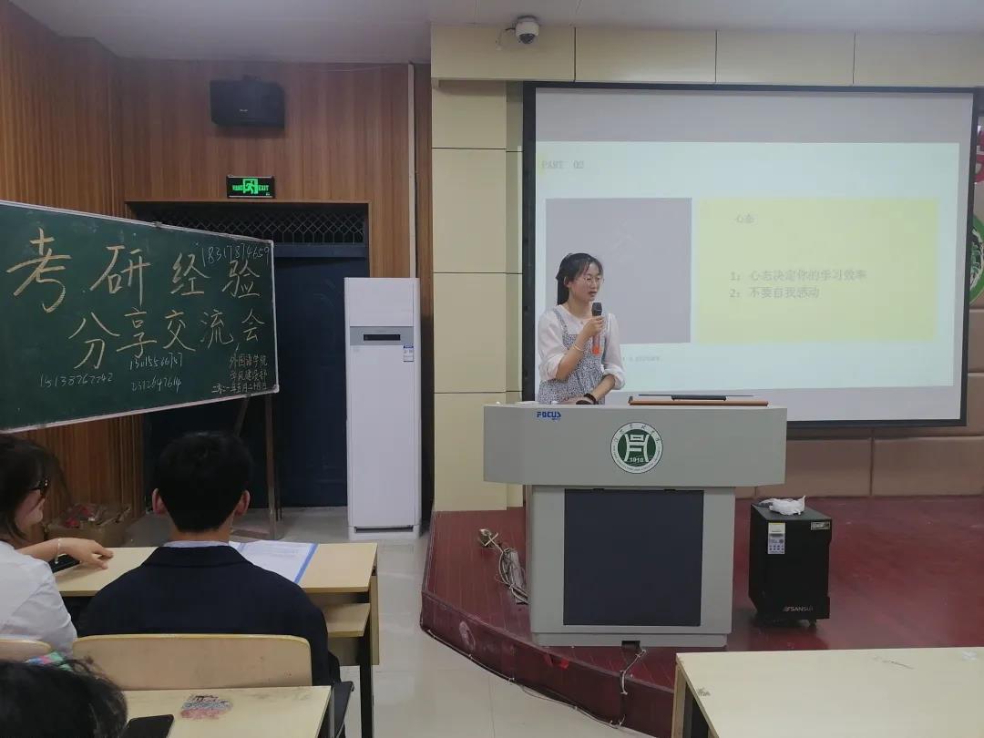 为帮助有意向考研的同学了解考研知识,学习考研经验,增强考研斗志,5月24日晚,外国语学院于二教204举办考研经验分享交流会。各毕业班辅导员、就业专员关迎雪老师、我院考研学子优秀代表以及18、19级同学参加了本次大会。