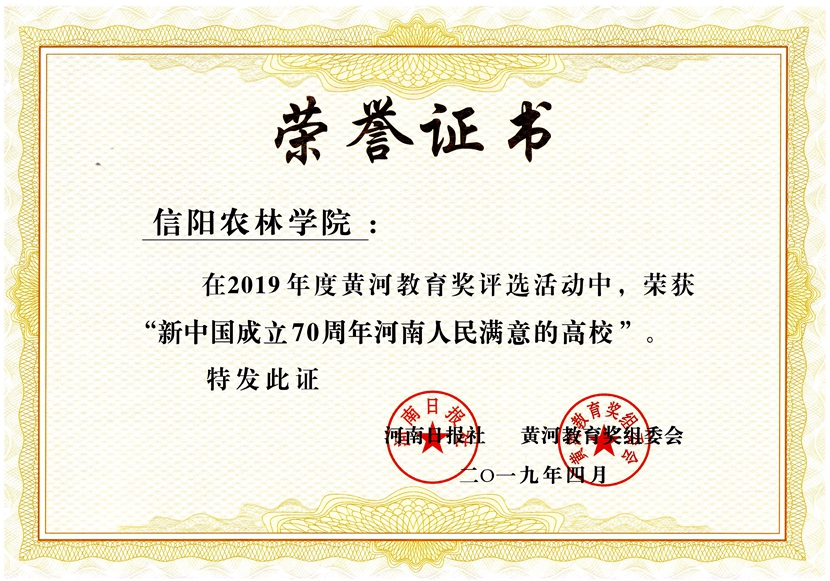 beat365在线平台官网获评“新中国成立70周年河南人民满意的高校”