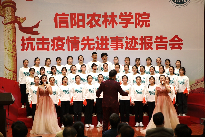 报告会上,文学艺术学院师生代表带来了特别节目诗朗诵《中国精神 中国担当》和大合唱《与你同在》。报告会在师生大合唱《我和我的祖国》中圆满结束。