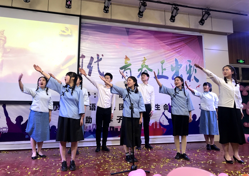 12月26日晚,外国语学院“扬帆新时代,青春正出彩”元旦文艺晚会在第一教学楼E101举办。外国语学院党总支书记张志强、相关负责老师和2018级学生共同观看了本次晚会。晚会以“我眼中的信农、在外院的收获、在外院的有趣经历”等一系列宣传片作为开场,歌曲《残酷月光》《越过山丘》、舞蹈《落花、棠梨煎雪》、小品《相亲之白手套》、相声《满腹经纶》、诗朗诵《刺》《光的赞歌》、舞蹈《创造101,fingers》、话剧《爱》等众多精彩节目赢得现场师生阵阵掌声。晚会在大合唱《明天会更好》中落下帷幕。