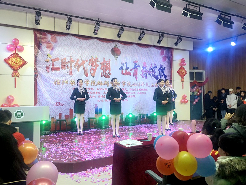 12月27日晚,旅游管理学院在第一教学楼E101举办“汇时代梦想,让青春绽放”元旦联欢晚会。旅游管理学院院长刘开华、党总支书记靳潢以及学院师生共三百余人齐聚一堂,共同观看了此次晚会。院长刘开华为晚会致辞。随后,舞蹈《DADDY》《啦啦操爵士》、歌曲《美丽的心情》《牵丝戏》《小酒窝》《父亲写的散文诗》、小品《TF girl》、朗诵《青春中国》、相声《兄弟,帮个忙》、心理剧《最好的自己》等节目轮番上演,晚会在《难忘今宵》的音乐里画上了圆满句号。