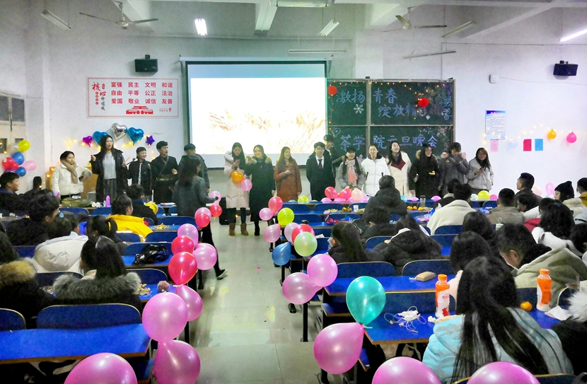 12月27日晚,茶学院在第一教学楼E102举办“激扬青春,绽放精彩”元旦晚会。茶学院院长郭桂义、党总支书记袁丁、相关教师和全体大一学生参加了晚会。歌曲《同桌的你》《趁早》,舞蹈《DDU DU DDU DU》、相声《我看名著》、朗诵《将进酒》、吉他弹唱《那些花儿》等精彩节目依次开演,节目之间穿插着你画我猜、猜歌词等游戏,现场欢声笑语,其乐融融。