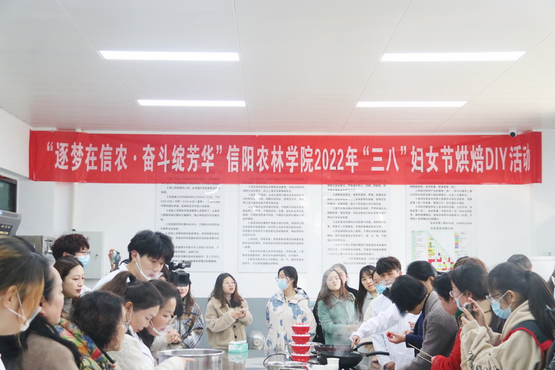 3月1日下午,由校工会主办、食品学院承办的“逐梦在信农·奋斗绽芳华”2022年庆“三八”妇女节烘焙DIY活动在食品学院1B103如期开展。校党委副书记、工会主席王庆兵,副校长王万玲参加活动并现场指导,校工会相关负责同志,食品学院班子成员、各分工会女教职工代表30余人参与了活动。
