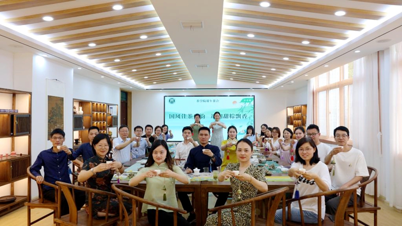 茶学院在科技楼1C201茶文化实验室举办以“国风佳茶生韵,端阳甜粽飘香”主题的端午茶会,分为品鉴茶叶、仿宋点茶等多个环节,老师们还准备了五色线、香包、粽子、糕点等,感受传统文化魅力,传承中华民族传统美德。