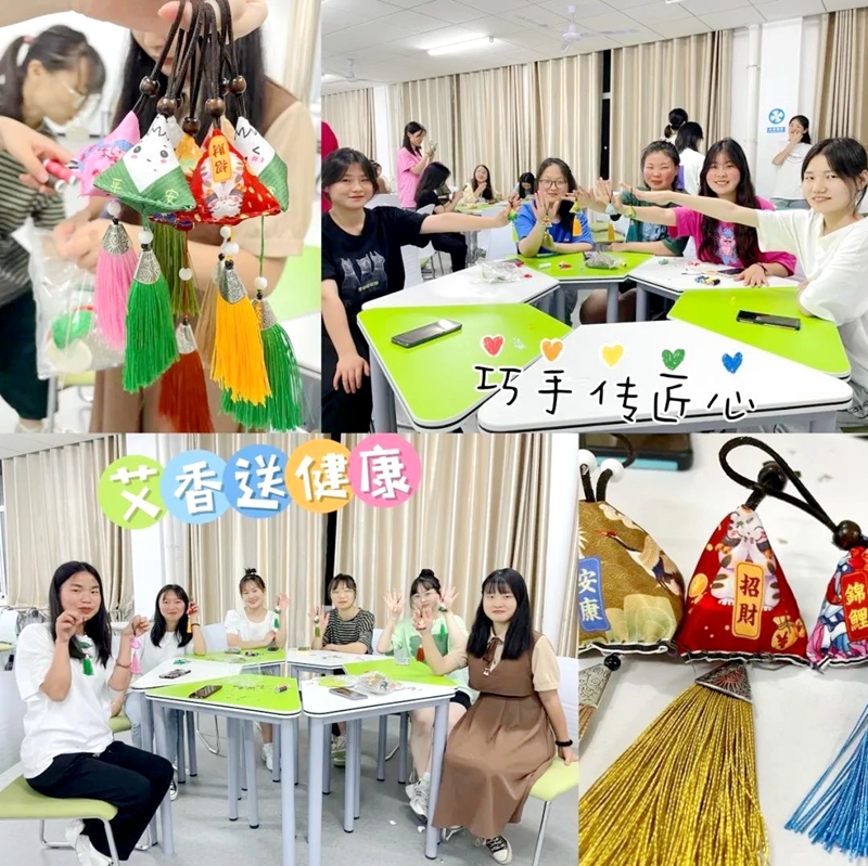 林学院部分学生开展了端午节文化知识教育暨国风艾草香包手作比赛主题活动。辅导员王娟老师通过讲解我国端午节民间香包制作工艺,介绍佩戴填充芳香开窍的中草药香囊、香包的益处,带领同学们体验了自制艾草香包的乐趣。
