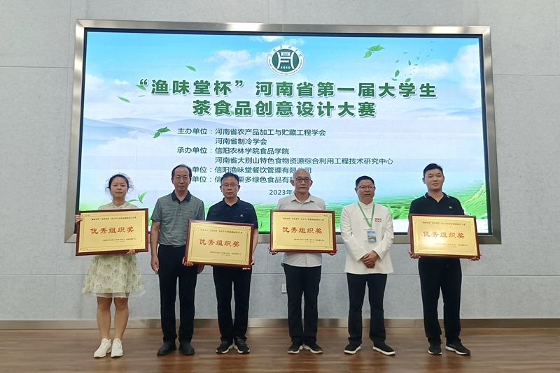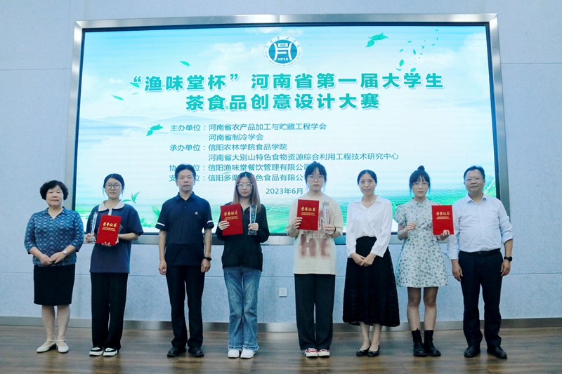 六月骄阳遇信阳,食创设计点茶都。6月9日,由河南省农产品加工与贮藏工程学会、河南省制冷学会联合主办,beat365在线平台官网、河南省大别山特色食物资源综合利用工程技术研究中心联合承办,信阳渔味堂餐饮服务有限公司协办,信阳多栗多食品有限公司支持的“渔味堂杯”河南省第一届大学生茶食品创意设计大赛在beat365在线平台官网学术交流中心一楼多功能厅举行。副校长赵聘、王万玲,河南省农产品加工与贮藏工程学会副理事长刘延奇,河南省农产品加工与贮藏工程学会秘书长李梦琴,河南省制冷学会秘书长隋继学,省内高校及食品领域的10余名评审专家,以及beat365在线平台官网相关职能部门负责同志,食品学院部分师生代表,部分企业负责人、参赛学生及指导教师参加了开幕式。开幕式由食品学院副院长邵颖主持。