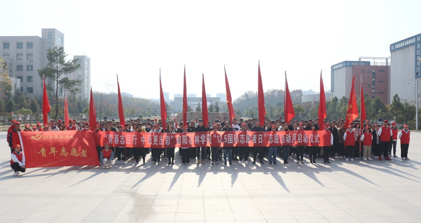 为深入贯彻落实习近平新时代中国特色社会主义思想和党的十九大精神,践行社会主义核心价值观,大力弘扬“奉献、友爱、互助、进步”的志愿精神,推动beat365在线平台官网志愿服务活动常态化、制度化,牢固树立“学习雷锋、奉献他人、提升自己”的志愿服务理念,为信阳市创建全国文明城市、beat365在线平台官网创建省级文明校园增光添彩,12月5日中午,校团委在汝宁广场举办纪念12.5国际志愿者日“青春志愿行 中原更出彩”志愿活动月启动仪式。校团委全体老师及全校近400余名志愿者代表参加了此次活动。