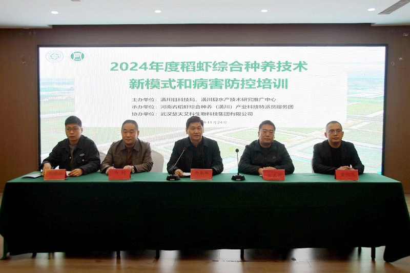 河南省稻虾综合种养(潢川)产业科技特派员服务团团长杨东辉教授带领团员张婷、苏超群、杨铁柱、刘加慧和姜汉军,在武汉楚天艾科生物科技集团有限公司的鼎力支持下,共同确保了本次培训活动的顺利进行。此次培训旨在深化农业科技创新,推广稻虾综合种养新模式,以新质生产力助力地方稻虾产业发展和农民增收。