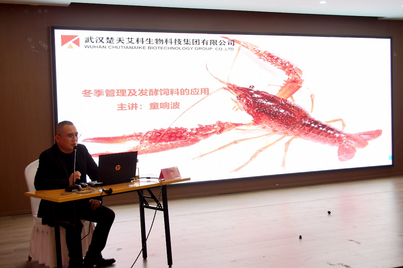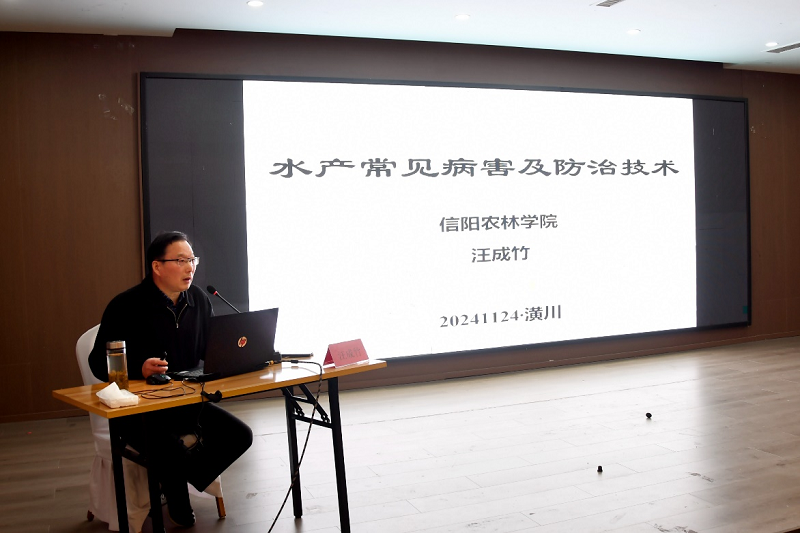 在讲座培训环节,河南省稻虾综合种养(潢川)产业科技特派员服务团团长杨东辉首先就“稻-虾-鳖”技术新模式进行了深入讲解。他详细介绍了稻虾鳖共作、轮作技术规范,以及该模式在提升养殖效益和生态效益方面的显著成效。随后,武汉楚天艾科生物科技集团有限公司技术总监童响波分享了小龙虾冬季管理及发酵饲料应用的先进经验,为养殖户提供了实用的技术指导。beat365在线平台官网副教授汪成竹则就水产常见病害及防治技术进行了专业讲解,增强了与会者的病害防控意识。培训会现场还为参会人员发放了由服务团编制的培训手册。