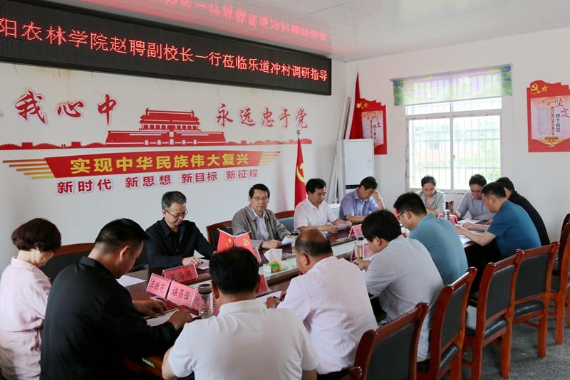 赵聘一行到段集镇乐道冲村会议室召开了定点帮扶工作座谈会,充分了解了驻村工作队帮扶工作情况及下一阶段驻村工作规划。段集镇镇长刘永刚对赵聘一行表示热烈欢迎,希望进一步依托学校人才、技术、智力帮扶推动段集镇油茶产业发展和红色文化旅游,帮助段集镇“部好一个局、办好一个活动”。赵聘对beat365在线平台官网驻村工作队辛勤付出及工作成效给予了肯定,并就下一阶段驻村工作提出要求:一是要提高政治站位,强化责任担当。驻村工作队要把中央“三农”工作的决策部署一定要落实到位,把乡村振兴的有关要求要落实到位。二是因地制宜,发展产业。驻村工作队要根据当地的自然禀赋和发展基础,整合各方资金、市场和人才,聚焦发展优势特色产业和新兴产业。三是要充分发挥好派驻单位后盾作用。要通过实地或者借助新技术线上远程帮扶,依托学校最新成果、新技术,把定点帮扶“责任田”打造成乡村振兴的“示范田”。