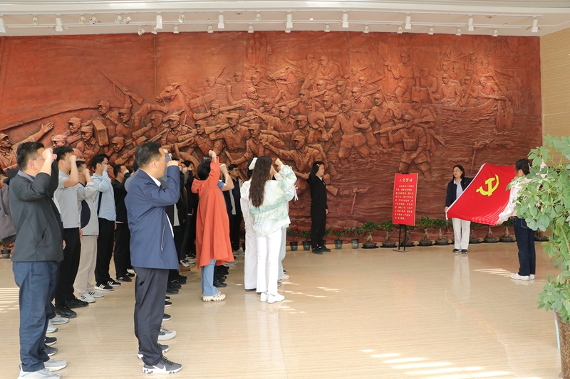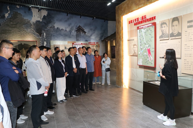 上午,机关一行来到刘邓大军渡淮纪念馆。馆内恢弘的巨型浮雕、泛黄的作战地图、斑驳的渡河工具等珍贵文物静默陈列,与沉浸式投影中模拟的抢渡场景交相辉映。讲解员声情并茂讲述着革命往事,党员们仿佛置身硝烟弥漫的战场,深刻体会到革命先辈以血肉之躯突破天堑的果敢与坚毅。活动现场,面对鲜红党旗,全体党员重温入党誓词,铿锵誓言在展厅回荡,既是对初心使命的庄严承诺,更传递出传承红色基因的坚定决心。