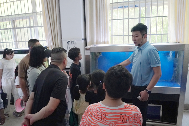 在水产学院,丰富多样的鱼类展品让孩子们仿佛置身于奇妙的水下世界。专业老师深入浅出地讲解鱼类的分类、习性等知识,并结合实际案例,让孩子们直观地感受到生物多样性的重要性,进一步拓宽了孩子们的知识面。