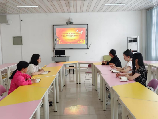71日上午,机关心理健康与咨询中心党支部在实验楼2B501开展忆峥嵘岁月 践初心使命——庆祝建党103周年主题党日活动,机关心理健康中心党支部全体党员参加