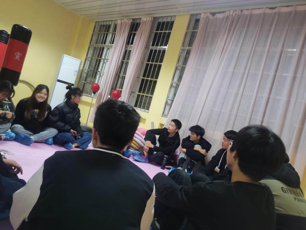 活动开始时,主持人先给大家做了情绪释放的分享,然后邀请同学们围成一个小圈,让每位同学自由发言,分享自己近期遇到的压力,释放自己的情绪,最后大家跟着音乐冥想,放松身心,同学们踊跃发言,分享了自己在生活上、学习上所遇到的一些压力,很多同学深有共鸣。