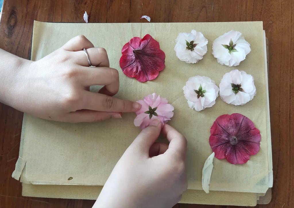 在疫情防控下,园艺学院结合学院特色,园艺养心站携心理健康服务部组织了以“与艺术结伴,与鲜花为伍,放空心灵养心压花”的活动。