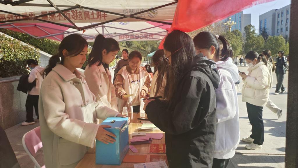 期末考试临近,同学备感复习、备考压力大。为帮助同学们缓解压力,提高心理素质,校团委青工部与校学生会心理健康部2023年12月7日在图书馆前联合举办了“我为同学做些事——交流心声,纸条传情”活动。活动旨在通过互动交流和心理疏导,帮助同学们排解压力,增强理解,加深友情。