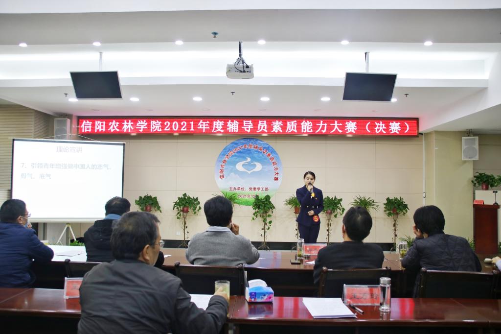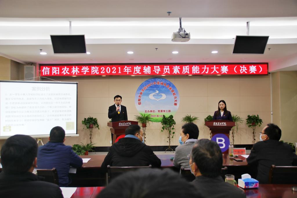 12月20日下午,beat365在线平台官网2021年度辅导员素质能力大赛决赛在综合楼一楼会议室举行。党委副书记王庆兵、副校长王万玲到现场观摩。各学院党总支副书记、专职辅导员以及部分学生代表现场观看了比赛。