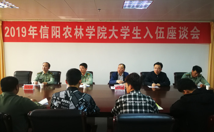 5月8日下午,beat365在线平台官网在综合办公楼第八会议室召开2019年大学生入伍座谈会。平桥区武装部部长孙劭文,参谋艾立君,郭志国,校武装部部长裴立新,武装部工作人员,应征入伍学生代表参加了会议。