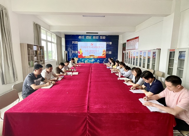 6月1日下午,信息工程学院在1A404党员活动室召开党总支中心组(扩大)理论学习会。会议由党总支书记梁其宇主持,学院班子成员、副科级及以上干部、党支部书记参加了会议。