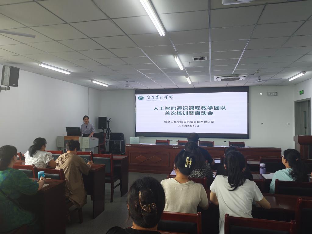 为全面落实河南省教育厅关于开设人工智能通识课程的要求,积极推动2025年秋冬季学期教学工作,信息工程学院公共信息技术教研室于6月10日下午在双创中心703室,成功举办了《人工智能》通识课程教师团队的首次培训暨课程启动会议。承担本课程教学任务的全体教师应邀参会。