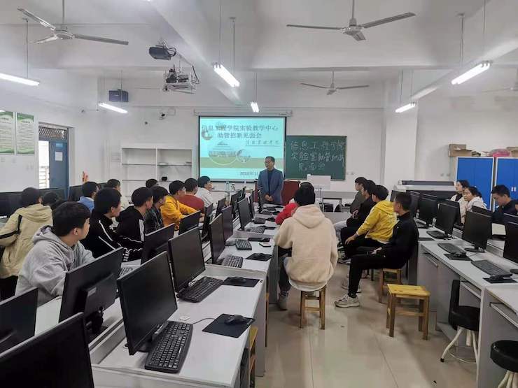 2020年11月5日中午,信息工程学院实验教学中心在二教403机房举办实验室助理管理员招新见面会,此次助管招新受到了学院领导老师的高度重视,经过前期对2020级各专业学生的宣讲,有30余名同学积极自愿报名,并到场参与了此次见面会。