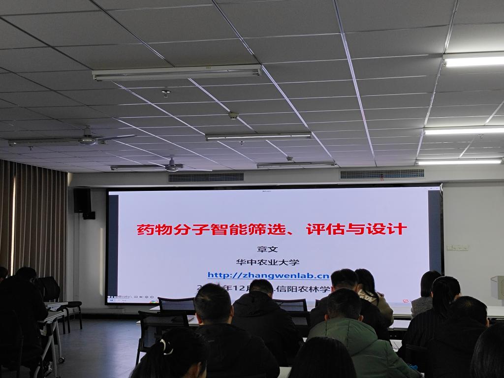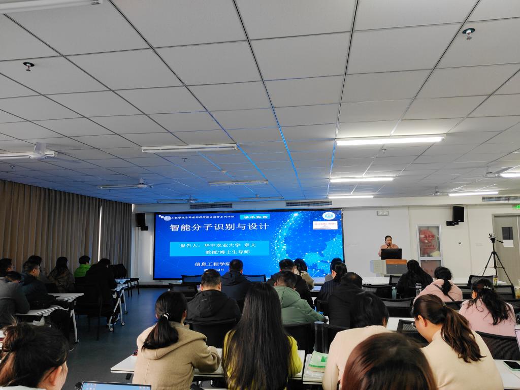 12月5日下午,信息工程学院全体教师齐聚双创618,共同聆听来自华中农业大学章文教授的报告《智能分子识别与设计》,报告会由潘赟副院长主持。