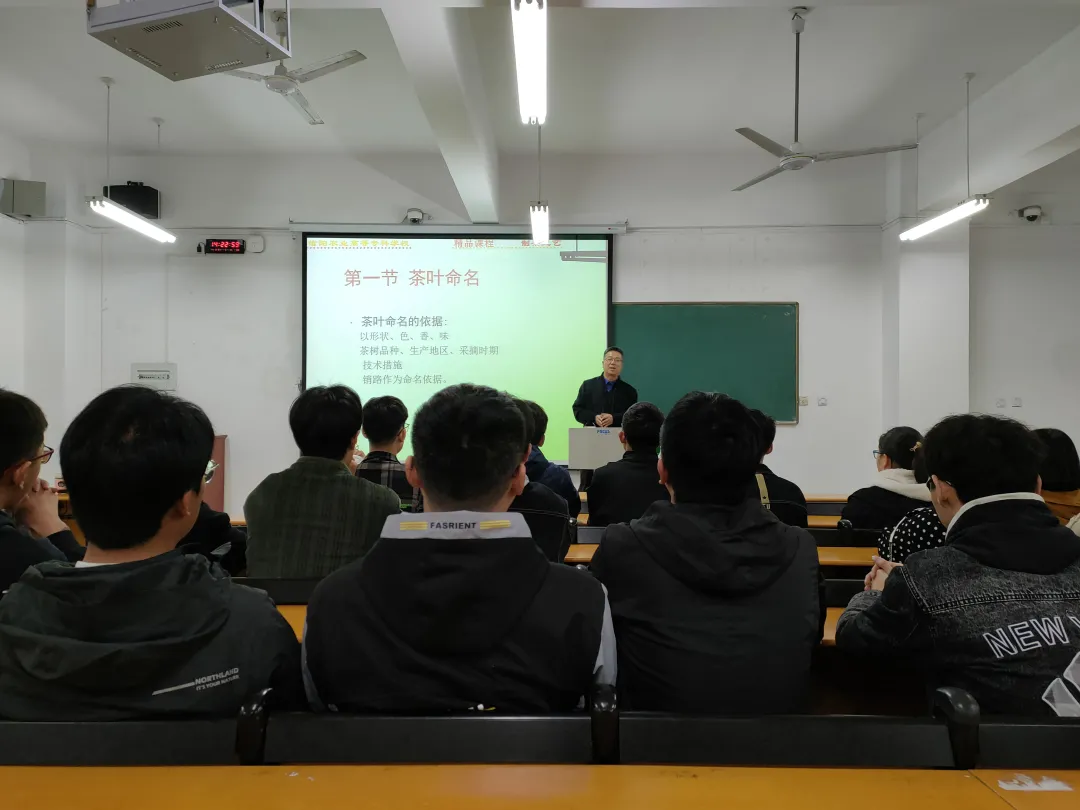 王处长首先给班级同学普及了茶叶的基本分类、生长地区等基础知识,帮助同学们认识茶叶,了解茶叶。接着,他以“廉、静、和、美”四字引出茶道中的人生真谛,希望同学们珍惜大学时光,不怕苦难,努力学习。最后,他强调了三点:第一,慎思敏行,希望同学们在学习的过程中,学思并重,勤学慎思,勇于实践,敢于创新。第二,识大体看大局,希望同学们不要让生活中的一些琐事阻碍自己前进的步伐,要树立人生的长期目标;第三,要珍惜同窗之谊,珍惜同学之情,共同营造积极向上的班级氛围。