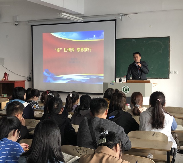 梁书记以《“疫”往情深 感恩前行》为题,首先讲述了在抗击疫情中,参加抗疫的医务人员中有近一半是“90后”、“00后”,他们白衣为甲、逆行出征,舍生忘死挽救生命,用一个个感人至深的故事,引导学子们坚定理想信念、树立正确的人生观和价值观,鼓励大家要不怕吃苦、不畏艰难、不惧牺牲,用臂膀扛起如山的责任,展现出青春激昂的风采,展现出中华民族的希望。
