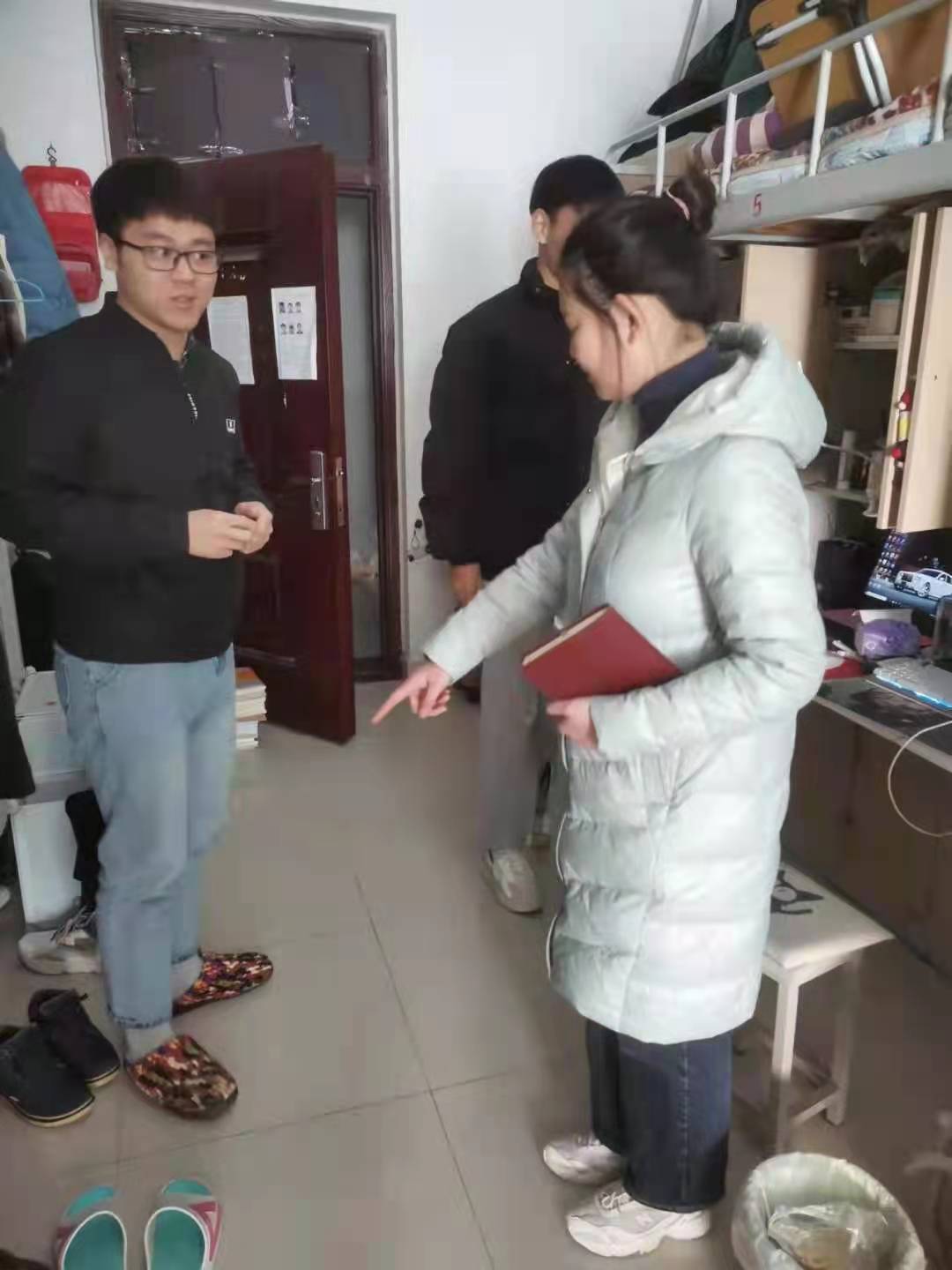 严冬来临,又临近期末备考,学生安全意识有松懈苗头,信息工程学院通过下宿舍的方式,进一步加强防疫、防火、防盗、防骗等安全教育,不定期抽查,全宿舍覆盖,充分保障学生安全。