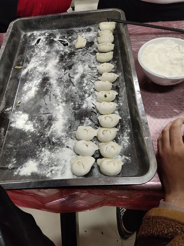 同学们远离家乡,在节日里不免有些怀念家里的味道。通过举行包饺子活动,一方面促进了同学们之间的交流,加深了师生之间的情感,增强了同学间的协作能力,另一方面也为思乡的同学们缓解了忧伤的情绪,让他们体会到学校的温暖,为“三全育人”打下了坚实的基础。