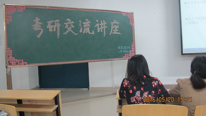 2016年5月20日下午3时整,信息工程学院网络工程本科专业14级在2教306举办考研经验交流讲座。此次交流会是为了激发同学们的学习和考研激情,可以对本专业考研形势有进一步的了解,同时也对同学们考研过程中遇到的问题做出解答,能增强学生信心,使准备考研的学生对考研有了更深的认识。