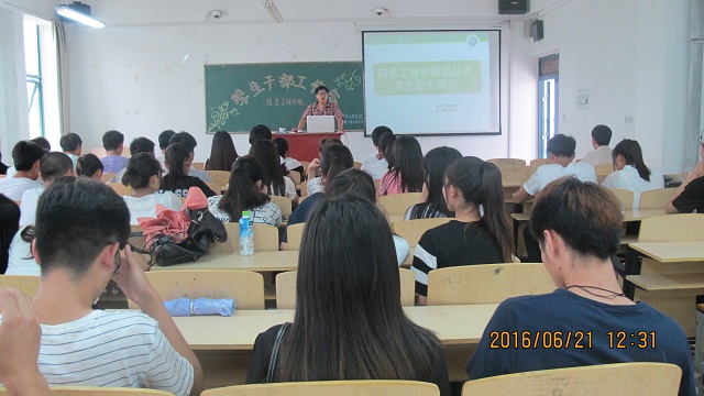 2016年6月21日中午12时30分,信息工程学院在二教202教室召开信息工程学院学生干部工作会暨暑期社会实践动员会,信息工程学院团总支书记朱猛和全体学生干部出席了本次会议。