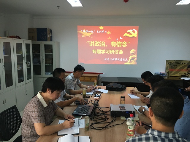 8月9日下午4:30,信息工程学院党总支在行政楼921召开了“两学一做”学习教育第一专题“讲政治、有信念”学习研讨会。会议由学院副院长李友国主持,全体教工党员参加了会议。会议由学习、研讨两部分组成。