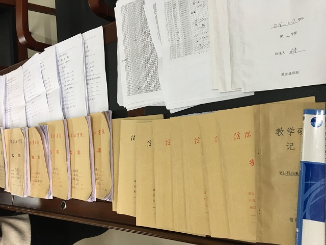 我院各教研室重点检查了任课教师的授课计划、实验计划与教学进度是否一致,上机实验记录是否认真填写,课堂是否进行学生考勤记录,作业(或实验报告)是否认真批改,以及教师听课记录本、手写教案等。2016年11月8日,每位任课教师都上交了教学相关纸质资料,并在院实验室集中展示,相互取经学习。