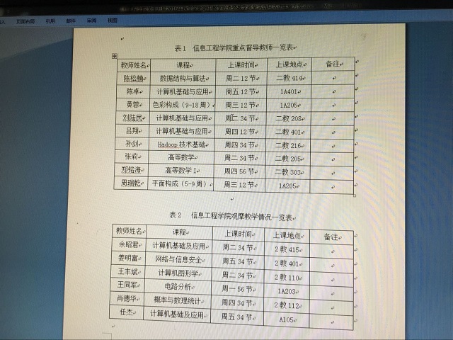 院教学督导组有计划地对本院承担有本科教学任务及今年新近教师课堂教学、实验课开展情况进行了督导。并制定了学院教学重点督导教师及观摩教学教师名单,院所属6个教研室也分别制定教研室公开课表进行了集中听课,并对本教研室任课教师的教学方法、教学效果进行了听课与点评。2016年11月8日,软件工程教研室组织开展观摩教学,院教学督导成员及教研室老师观摩了余昭君老师的《计算机基础及应用》课程,认为课堂教学目标明确,思路清晰,重点突出,此次活动开展对提高全体教师课堂教学水平起到了促进作用。