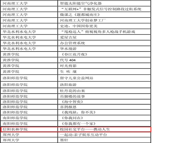 2017年4月21-23日,2017年(第10届)中国大学生计算机设计大赛河南省级赛在郑州大学举行。本次大赛共有全省36所高校的228件作品参赛。信息工程学院刘丽娟、余昭君老师指导冯世博、马永明和李项项作品“校园社交平台----携动人生”,参加本科组软件应用与开发类的比赛。三位学生经过技能测试、作品演示和现场答辩三个环节,最终获得三等奖。